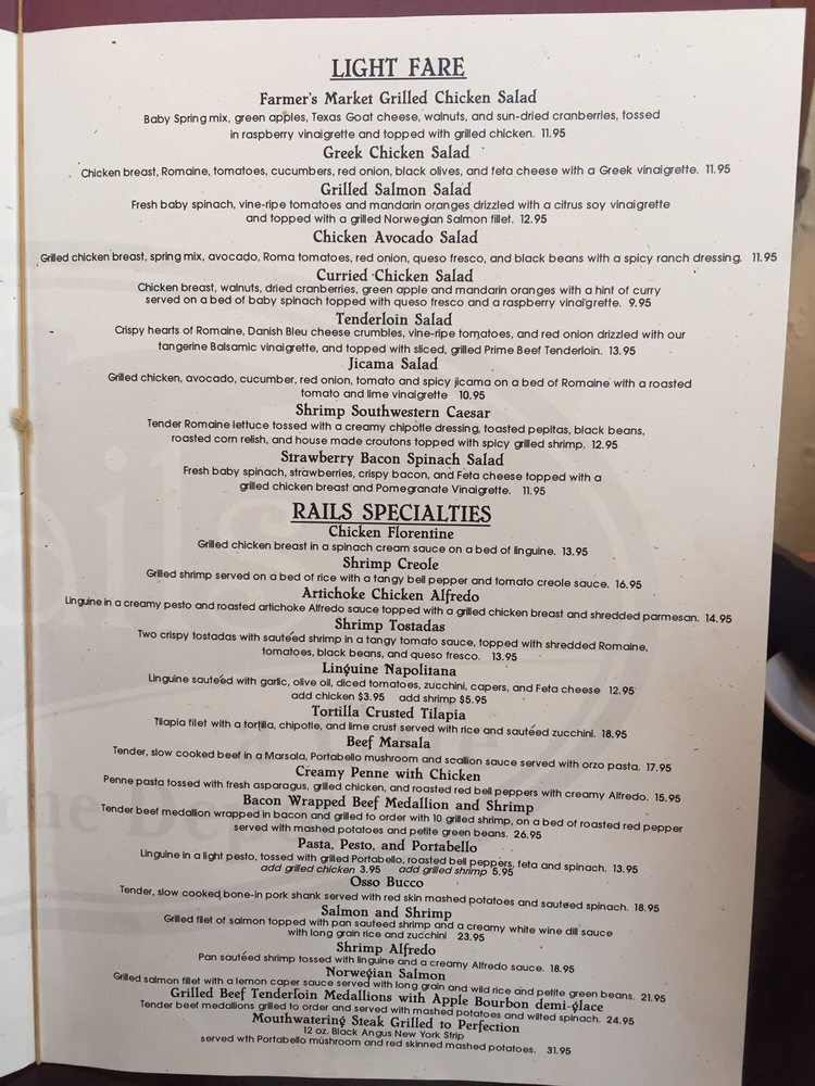 Rails a Cafe at the Depot Menu (2025 Update)